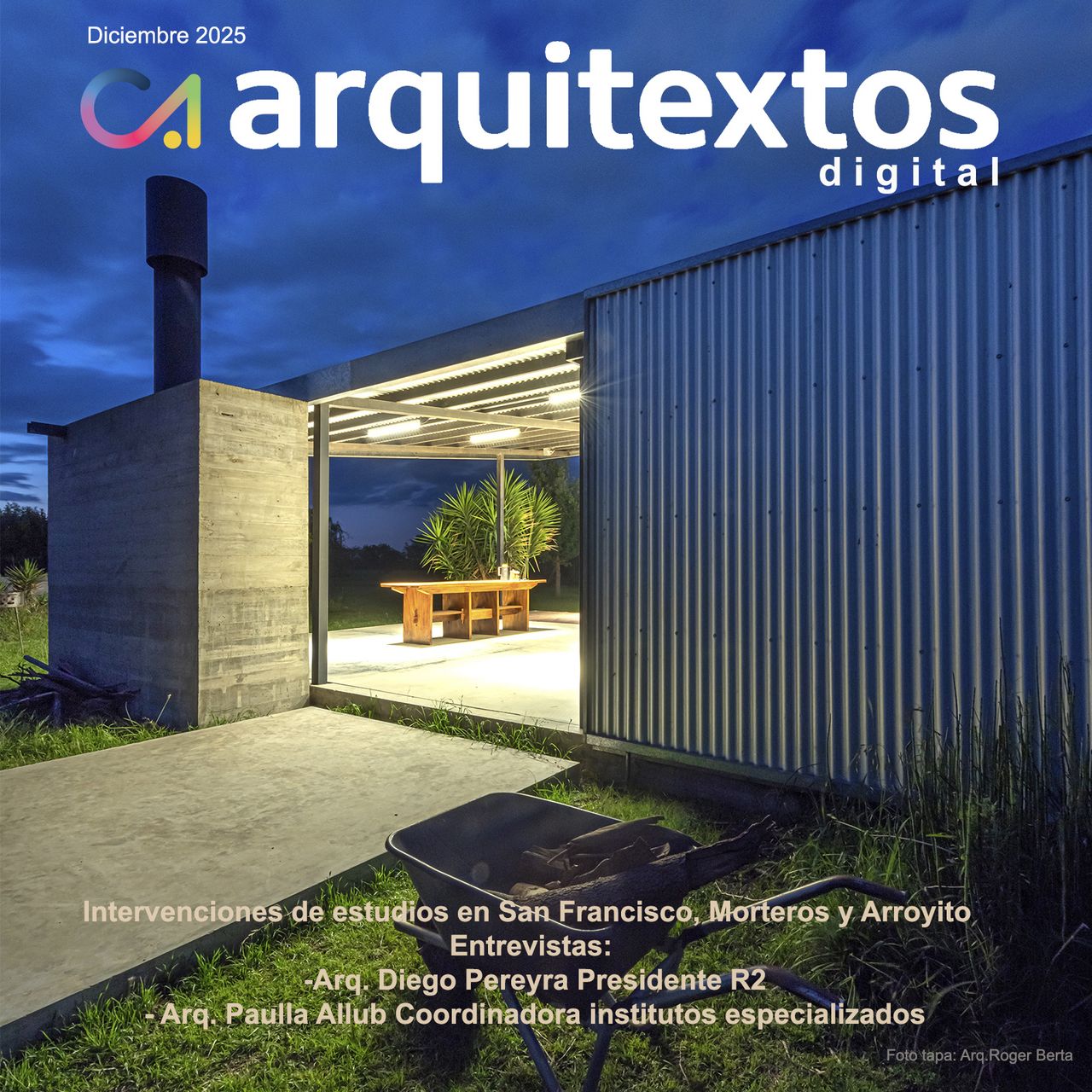 arquitextos 12/25 : Recorrido por estudios de arquitectura de Regional 2: Franco Morero y Florencia Monti Bruno (San Francisco) - Alejandra Paulín y Franco Miretti ( Arroyito) - Darío Sella (Morteros) - Entrevistas: Diego Pereyra (Presidente R2), Paula Allub (Institutos Especializados) y Cristian Mohaded (Diseñador Industrial) - Muestra Ornato ( Augusto Ferrari) - Casa FOA - Actualidad en domótica.